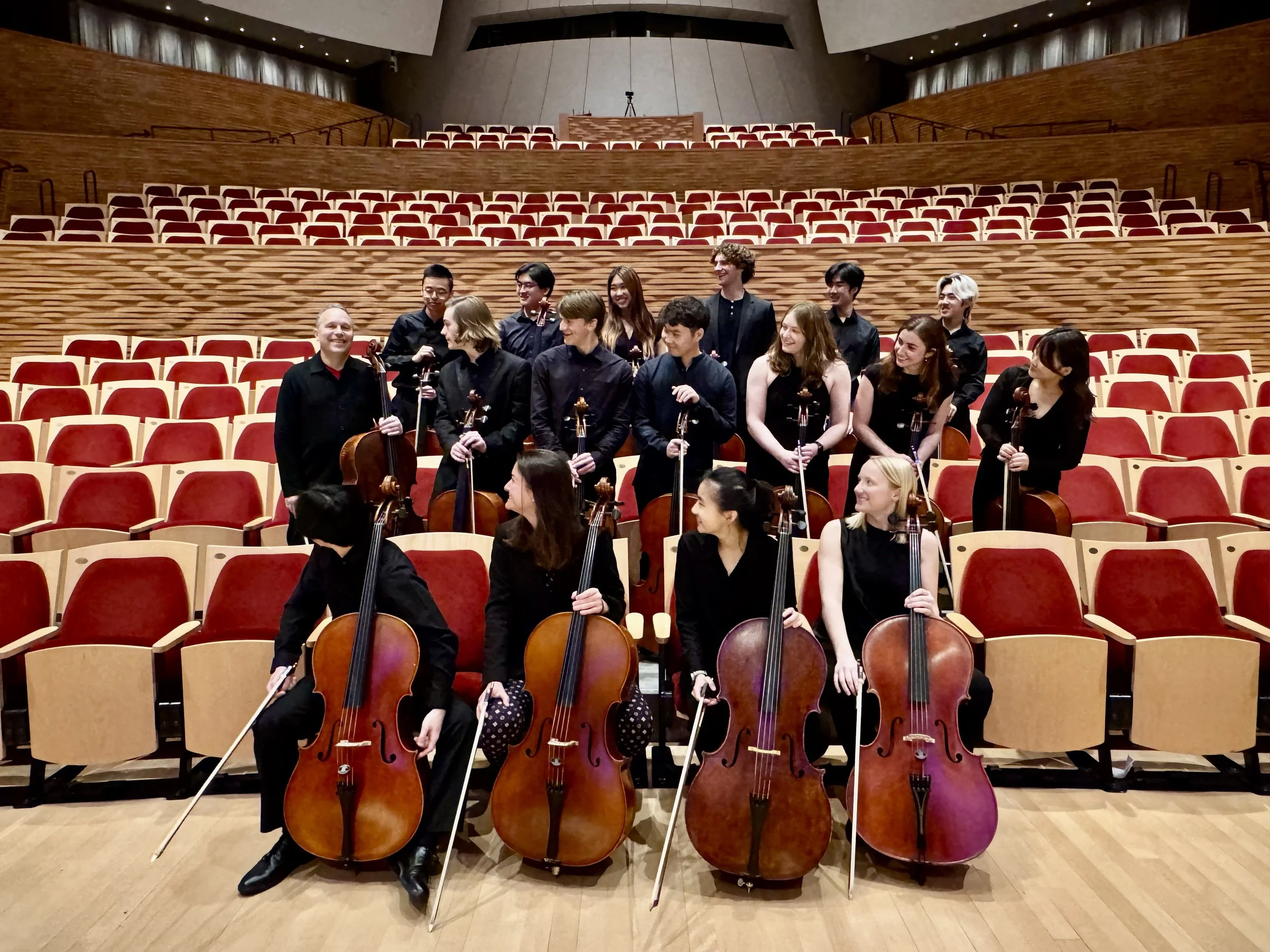 The Stanford Cello Choir formed in 2022 to explore the rich sonorities of works for multiple cellos. The group, founded and directed by Stanford Artist-in-Residence Christopher Costanza, explores repertoire spanning centuries, performing a wide range of works composed specifically for cello ensemble as well as creative arrangements of well-known pieces. The Cello Choir’s personnel include current and past Stanford students who all share in a single goal: participating in an inspiring ensemble highlighting the vast range of colors the cello has to offer. Going forward, the group aims to expand cello ensemble repertoire through commissions and new arrangements, with performances on and off campus.